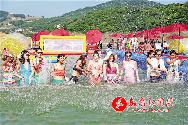 瀛湖的初夏,萬千變化。清晨,山和水還在夢中酣睡,一輪紅日從東面湖的盡頭沐浴而出,爬上山頭,霞光染紅了湖水,染紅了天空,湖面顯得更加清幽。傍晚,落日熔金,給群山鍍了一層金邊。此時,群鳥歸隱,群魚入眠。江風(fēng)攪動湖水,湖面波光瀲滟,明麗動人。晚歸的漁民搖著一葉扁舟在寂靜的湖面上飄蕩,成為畫中最美的風(fēng)景。習(xí)習(xí)涼風(fēng)也吹散了白日的暑熱,舒適愜意,是休閑避暑的好去處。若遇雨天,天地間扯起絲絲銀線,水天一色,如煙如霧,籠罩在瀛湖上空。那若有若無輕煙一樣的雨霧輕盈地飄蕩在湖面上、群山間,翠屏山莊上的亭臺水榭、湖心碧螺島上的螺峰塔,全都沐浴在水蒙蒙的輕紗中,如夢似幻?!拔魅角鞍橈w,桃花流水鱖魚肥。青箬笠,綠蓑衣,斜風(fēng)細(xì)雨不須歸?!贝藭r,湖里的魚兒成群結(jié)隊地游出水面透氣,正是釣魚的最佳時機(jī),湖邊不少垂釣愛好者正興致勃勃地冒雨釣魚,完全不顧雨已打濕了衣服。湖中,一葉葉漁舟和游船在雨中漫游,幽幽絲竹之聲從游船中飄出,像游走在煙雨迷蒙的江南水鄉(xiāng)。