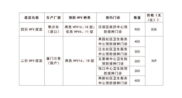 (4)本次僅有二價、四價HPV疫苗,數(shù)量有限,生產(chǎn)企業(yè)后續(xù)將會逐批供應(yīng),請耐心等待;可關(guān)注【漢濱疾控】微信公眾號,及時了解預約消息。