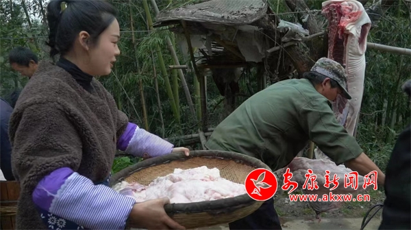 就這樣,抖音號“菲兒姑娘”出發(fā)啦。她平時負(fù)責(zé)策劃及出鏡。在2023年2月9日的采訪中,楊菲對華商報記者說:“我們的視頻一般是從食材的選取開始拍,比如炒臘腸,每個產(chǎn)品都是經(jīng)過精挑細(xì)選,也都是選取當(dāng)?shù)剞r(nóng)戶自己養(yǎng)殖的豬,整個制作過程也都會拍進(jìn)視頻里,就會不斷有粉絲朋友詢問購買臘腸、臘肉。”2022年11月份,僅用半個月時間該賬號幫村民賣完了5000余斤豬肉,還有不少客戶已經(jīng)在預(yù)定明年的臘肉,這讓附近的農(nóng)戶信心倍增。