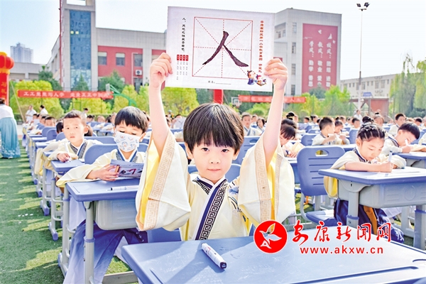 為傳承中國(guó)傳統(tǒng)文化,進(jìn)一步加強(qiáng)學(xué)生文明禮儀教育,日前,安康高新區(qū)第一小學(xué)舉行一年級(jí)新生開(kāi)筆禮及優(yōu)秀學(xué)生表彰活動(dòng)。千名一年級(jí)蒙童身著漢服,由班主任帶領(lǐng)跨過(guò)啟蒙門(mén),正衣冠、感恩鞠躬、朱砂啟智、擊鼓明志、開(kāi)筆啟蒙,接受中國(guó)傳統(tǒng)文化的洗禮,領(lǐng)略傳統(tǒng)文化的魅力。(張凌云 攝)