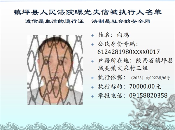 曝光失信 | 鎮(zhèn)坪法院2023年第三期失信人員名單公布