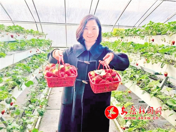 走進(jìn)大棚,草莓特有的清香味撲鼻而來,新型的鋼架種植平臺一線排開、高低錯落,一壟壟長勢茂盛的草莓秧苗嫩綠清新,一顆顆飽滿透紅的草莓點(diǎn)綴于綠葉之間,幾名游客正在仔細(xì)地采摘著成熟的果實(shí)?!斑@草莓聞起香,吃起來甜!在這采摘草莓還不用彎腰,不費(fèi)勁。”游客高女士說。