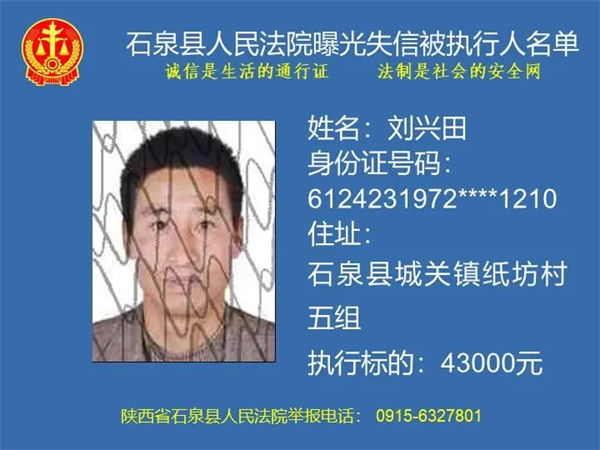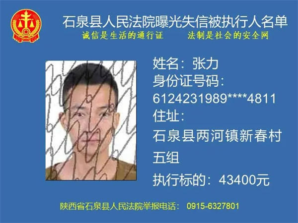 曝光失信 | 石泉縣人民法院曝光失信被執(zhí)行人名單(2024年第一期)