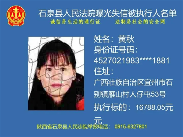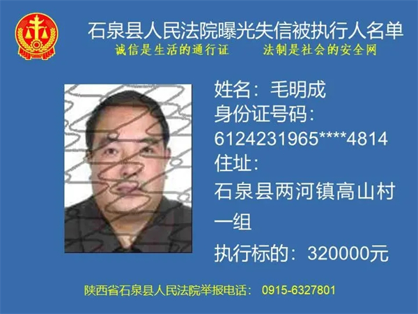 為了進(jìn)一步加大執(zhí)行力度,保障勝訴當(dāng)事人的合法權(quán)益,推進(jìn)社會(huì)誠(chéng)信體系建設(shè),依照《中華人民共和國(guó)民事訴訟法》《最高人民法院關(guān)于公布失信被執(zhí)行人名單信息的若干規(guī)定》等法律、司法解釋的有關(guān)規(guī)定,現(xiàn)對(duì)一批已進(jìn)入執(zhí)行程序,且尚未全部履行義務(wù)的被執(zhí)行人進(jìn)行媒體曝光,歡迎廣大群眾支持石泉縣人民法院的工作,向我院提供被執(zhí)行人的財(cái)產(chǎn)線索,使生效法律文書(shū)能夠得到切實(shí)執(zhí)行,讓人民群眾切實(shí)感受到公平正義就在身邊。