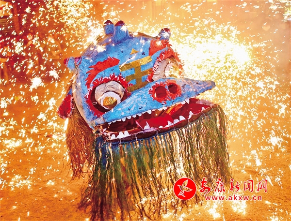 太平燈,又名“火獅子”,興起于明朝嘉靖年間,2015年12月被列入“陜西省第五批民俗類非物質(zhì)文化遺產(chǎn)名錄”。披紅掛彩舞翩躚,火樹銀花不夜天。這是一場(chǎng)“攻”與“守”的博弈,是一場(chǎng)屬于光與火的“盛宴”,也是視覺與心靈的雙重震撼。前期經(jīng)歷了“扎、糊、編、繪、合”五大工序制作而來的獅子活靈活現(xiàn),靜待佳時(shí)。正月十三到正月十六,當(dāng)天色漸晚,人群便如眾星捧月似的簇?fù)碇缓谝磺鄡芍华{子如約而至。在花燈引路,鑼鼓伴樂下,獅隊(duì)沿著固定的道路走街串巷。每到一戶人家,獅子以粗獷的步伐搖頭擺尾向主人“示威”或“挑釁”,主家和圍觀的群眾便拿出特制的“花子”對(duì)其噴射煙火。獅子在噴出的萬道金光中毫無懼色,反而在烈焰騰飛中雀躍歡舞,與火星融為一體,在古鎮(zhèn)街區(qū)的情境襯托下,塑造出崇尚和諧、敬畏自然的傳統(tǒng)底色和恣意縱橫、瀟灑自由的現(xiàn)代本色?;ㄗ訜迷矫土?,呼喊的聲浪越高,祈福的心愿也就越強(qiáng)烈,飽含著祈求生活安定、國泰民安的美好寓意,映照著涌動(dòng)銳意創(chuàng)新、開拓進(jìn)取的澎湃熱潮,而這些風(fēng)韻,也都如同藏在蜀河血脈中的基因密碼般,代代相傳,經(jīng)久不衰。