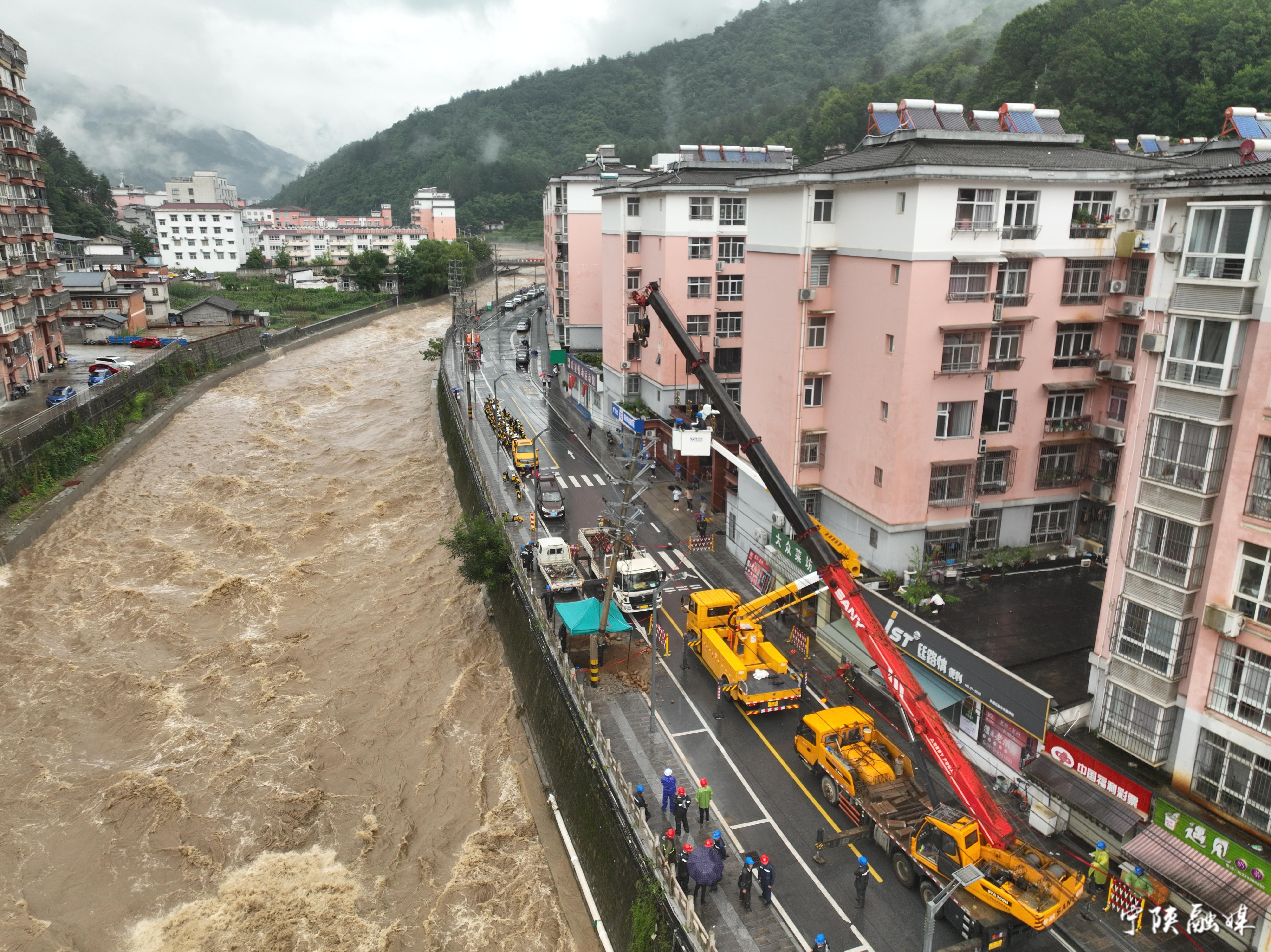 面對汛情,寧陜電力公司共出動巡視搶修車輛97臺次、檢修人員212人次、分6個現(xiàn)場工作組全力搶修,已實現(xiàn)各鎮(zhèn)供電恢復(fù)全覆蓋,合計恢復(fù)20790戶。