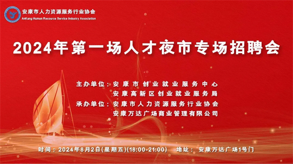 為有效保障企業(yè)用工需求,促進未就業(yè)高校畢業(yè)生、退役軍人、城鎮(zhèn)失業(yè)人員、返鄉(xiāng)農(nóng)民工等各類人員就業(yè),安康市創(chuàng)業(yè)就業(yè)服務(wù)中心、安康高新區(qū)創(chuàng)業(yè)就業(yè)服務(wù)局定于2024年8月2日(星期五)在安康高新區(qū)萬達廣場1號門舉辦2024年第一場人才夜市專場招聘會,現(xiàn)將活動事項公告如下: