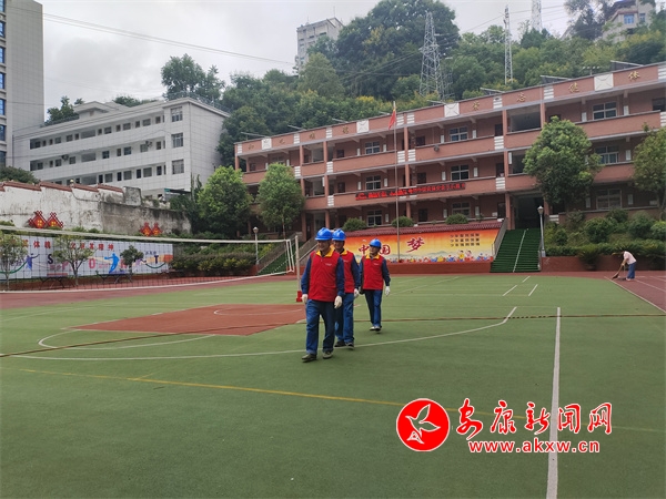 在白河縣冷水鎮(zhèn)中心小學(xué),工作人員仔細(xì)檢查校園用電設(shè)備情況,由于暑假期間學(xué)校用電設(shè)施大多處于閑置負(fù)荷狀態(tài),加上高溫、暴雨等天氣影響,存在諸多安全用電隱患。工作人員重點(diǎn)對(duì)教室、辦公室、食堂等場所的供電設(shè)備進(jìn)行“把脈問診”,并對(duì)這些區(qū)域的開關(guān)插座進(jìn)行試用,確保用電無憂。