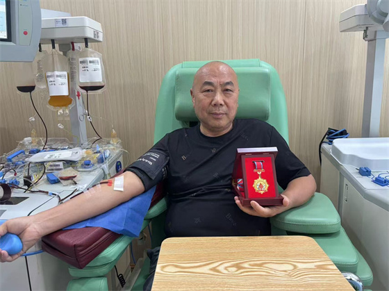 從那時起,李軍開啟了自己的獻(xiàn)血之路,不論刮風(fēng)下雨、烈日寒冬,還是逢年過節(jié),只要接到血站通知,他總會安排好手頭工作來到血站擼袖獻(xiàn)血。記得那是2021年7月15日,盡管天氣惡劣,李軍還是準(zhǔn)時到達(dá)獻(xiàn)血屋,頭天晚上接到血站電話的李軍,第二天早早向自己的公司請了個假,立馬趕往獻(xiàn)血屋捐獻(xiàn)血小板。對于獻(xiàn)血這件事,從不耽誤、從不含糊。因為他覺得,自己的付出,能使生命得以重生,是自己人生價值的最好體現(xiàn)。李軍:獻(xiàn)完這次血,我就光榮“退休”了