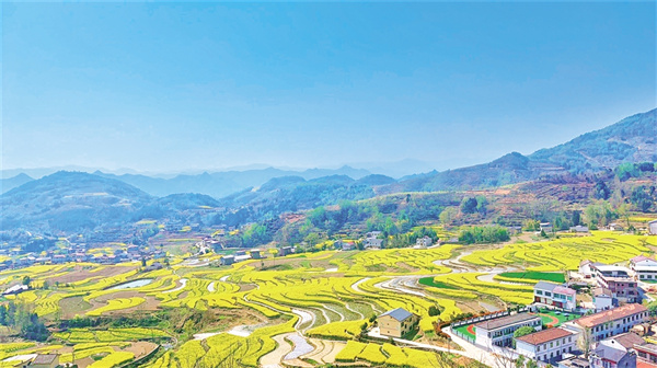 此時(shí),正值油菜花的最佳觀賞季節(jié),踏入漩渦鎮(zhèn),仿若踏入了一個(gè)被歲月遺忘的世外桃源。山巒連綿起伏、梯田層層疊疊如天梯般蜿蜒而上,大者如曲池,小者似新月,在陽光下閃耀著金色的光。