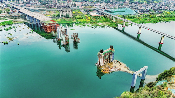 橋梁上部結(jié)構(gòu)開始施工 安康新關廟漢江大橋“破水而出”