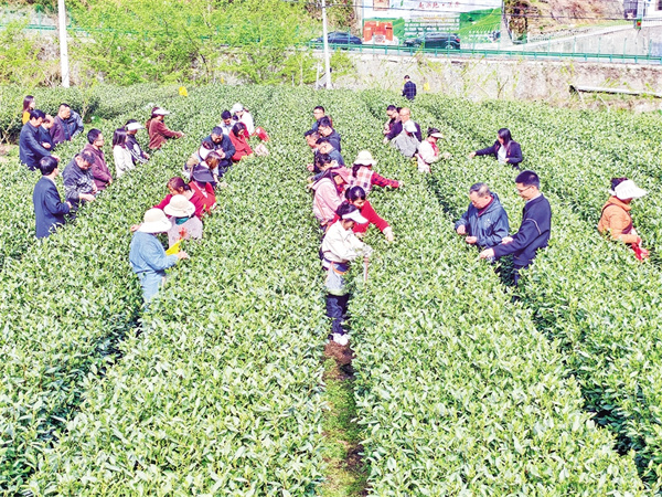 仲春時(shí)節(jié),漢陰縣城關(guān)鎮(zhèn)三元村的鳳凰山富硒茶園迎來了一年中最繁忙的時(shí)刻。千畝茶田順著山勢(shì)鋪展,新芽吐翠,茶香四溢,60余名采茶工穿梭其間,指尖翻飛間將鮮嫩的茶芽收入竹簍。這片承載著鄉(xiāng)村振興希望的茶園,正以蓬勃的生機(jī),勾勒出一幅“茶興、村美、民富”的壯美畫卷。