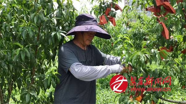 同樣迎來收獲的還有城關(guān)鎮(zhèn)的黃桃,在城關(guān)鎮(zhèn)龍嶺村的黃桃種植基地,連片的桃樹郁郁蔥蔥,金燦燦的黃桃壓彎了枝條,空氣中彌漫著誘人的桃香?;刎撠熑藙⒑暾χ烧?,臉上洋溢著燦爛的笑容,他一邊采摘一邊介紹道:“我們這個桃園有金鳳黃桃、黃金黃桃、秋彤桃和冬桃四個品種,一共有9畝多,從6月中旬到10月左右,陸續(xù)都有成熟的桃子?!?/p>