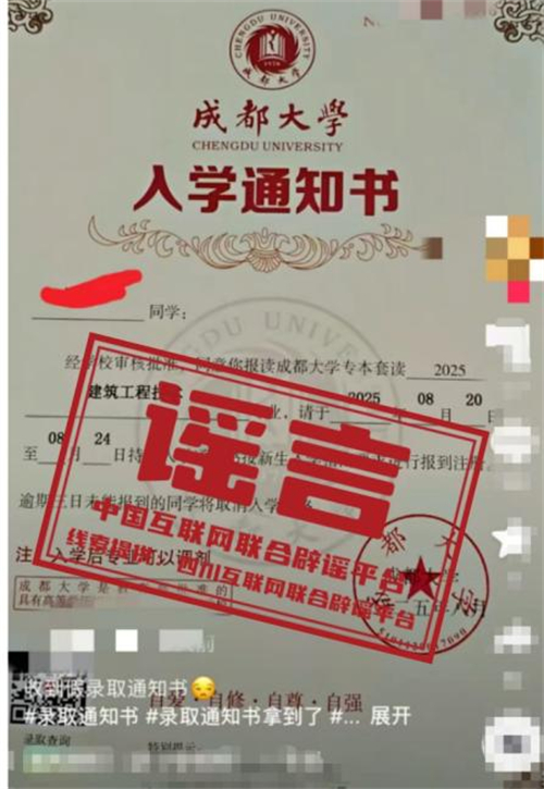 教育部多次提醒,部分機(jī)構(gòu)和個(gè)人打著普通高等學(xué)歷教育幌子,實(shí)際卻為自考助學(xué)、網(wǎng)絡(luò)教育等其他教育形式,或進(jìn)行虛假宣傳。如未通過高考招生錄取獲得正式通知書,無法注冊(cè)普通高校正式學(xué)籍,也無法取得普通高等學(xué)校學(xué)歷證書??忌凹议L應(yīng)通過正規(guī)渠道核驗(yàn)錄取信息,嚴(yán)格保護(hù)個(gè)人信息,防止被不法分子利用。(來源:四川互聯(lián)網(wǎng)舉報(bào)辟謠平臺(tái)、成都網(wǎng)絡(luò)辟謠)