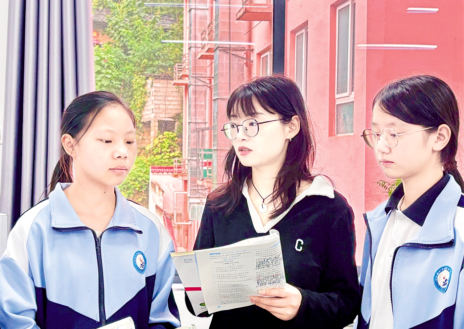吳雙雙與學(xué)生探討問(wèn)題