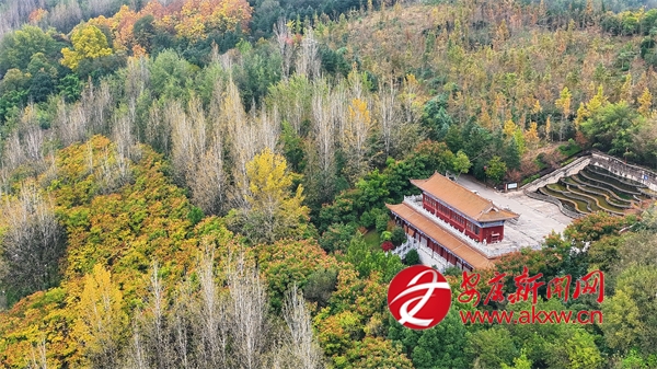 初冬時(shí)節(jié),漢陰的龍崗公園內(nèi)外層林盡染,與人文景觀交相輝映,構(gòu)成一幅流動(dòng)的山水畫卷。公園地勢(shì)連綿,園內(nèi)步道蜿蜒,亭臺(tái)錯(cuò)落。從空中望去,茂密的林木披上了紅、黃、橙交織的花衣裳,與常綠樹(shù)種相互點(diǎn)綴,猶如大地的調(diào)色盤。山頂?shù)凝垗忛w巍然屹立,在金黃烏柏與如火楓葉的簇?fù)碇校蔀檎麄€(gè)公園的視覺(jué)焦點(diǎn)。登閣遠(yuǎn)望,漢陰縣城全貌盡收眼底,月河如帶穿城而過(guò),與秋日晴空共同勾勒出“水天一色”的壯美圖景。(通訊員 文婷 徐歡)