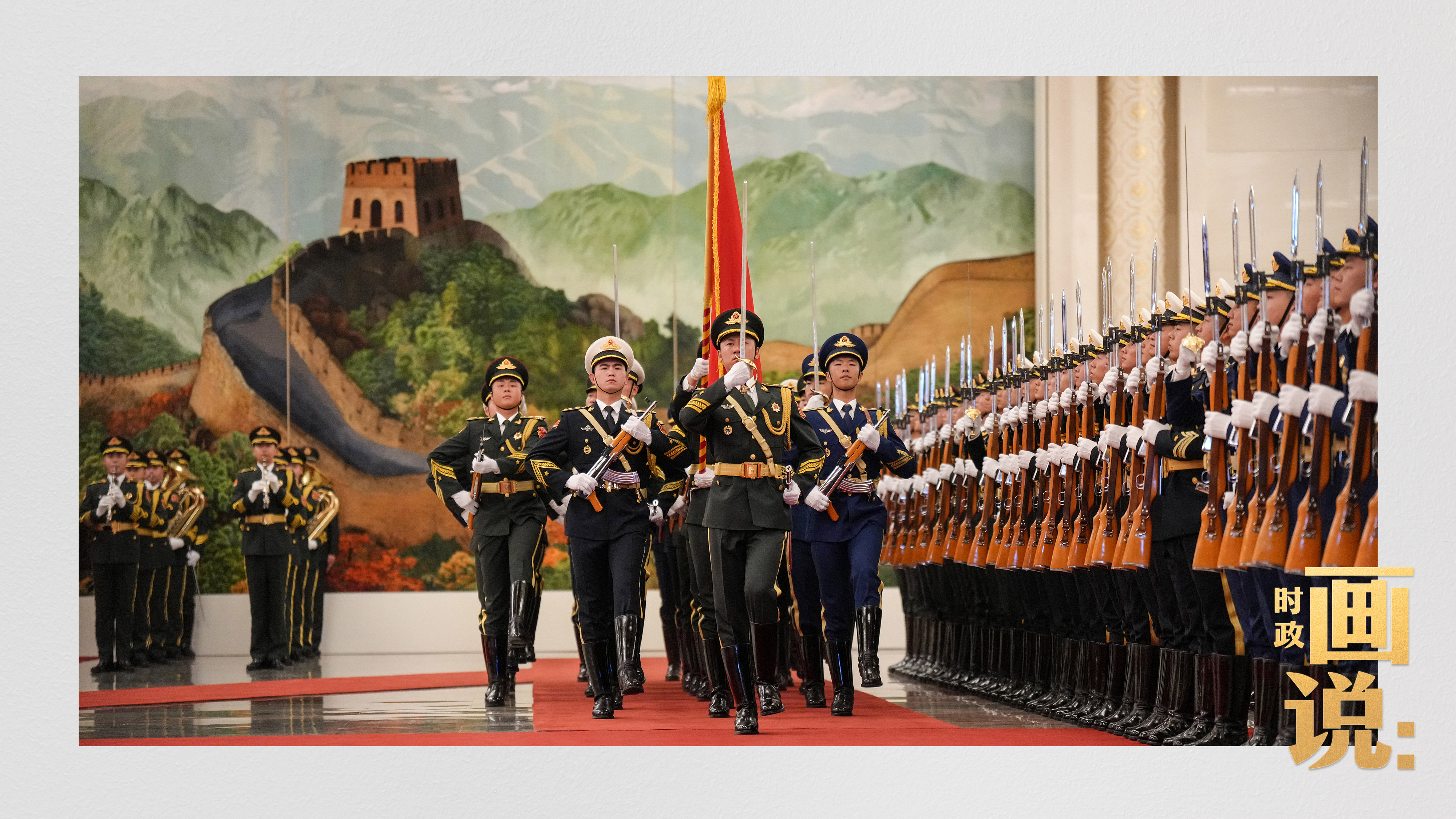△習(xí)近平和夫人彭麗媛在人民大會堂北大廳為馬克龍和夫人布麗吉特舉行歡迎儀式