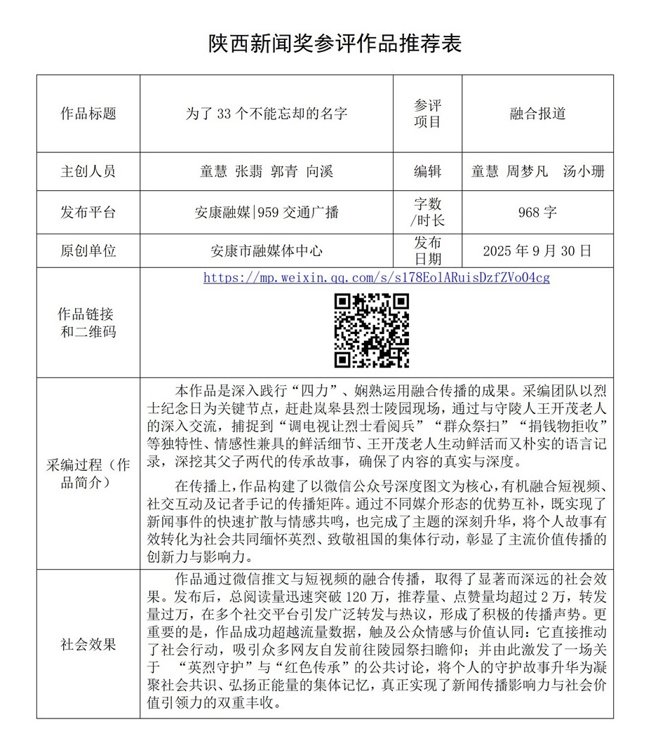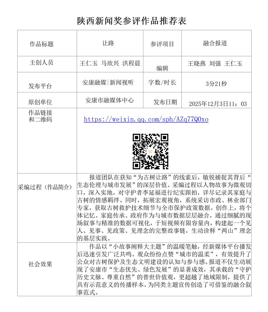 安康市融媒體中心關于2025年度陜西新聞獎融合傳播類參評作品的公示