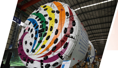 我國自主研制的、在昆明組裝的國內(nèi)最大直徑硬巖掘進機“彩云號”,以白色刀盤為底,用橙、黃、藍、綠、紫五色繪出一幅孔雀圖案。 |