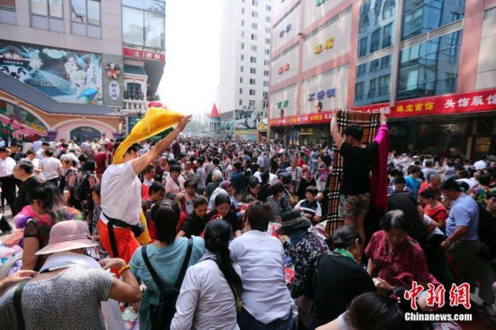 9月15日,幾位來(lái)自斯里蘭卡的游客慕名前來(lái)天意選購(gòu)商品。當(dāng)日,自1992年開(kāi)業(yè)至今的北京天意市場(chǎng)迎來(lái)其在北京西城阜外大街營(yíng)業(yè)的最后一日,商家趁機(jī)“瘋狂甩貨”,大批北京民眾也紛至沓來(lái)。這里曾是北京著名的小商品商城,聚集了數(shù)千家商戶。為疏解北京非首都功能,天意商城將于本月16日關(guān)門(mén)停業(yè)。中新社記者 崔楠 攝