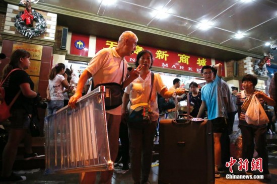 9月15日,顧客在天意商城門(mén)口休息。當(dāng)日,商戶在北京天意商城甩賣(mài)商品,吸引大批顧客搶購(gòu)。天意商城是北京規(guī)模最大的小商品批發(fā)兼零售市場(chǎng),為疏解北京非首都功能,天意商城將于9月16日關(guān)門(mén)停業(yè)。中新社記者 盛佳鵬 攝
