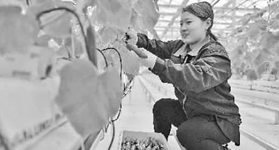1月19日,河北省南和縣現(xiàn)代特色農(nóng)業(yè)示范園區(qū)工人在智能溫室內(nèi)采摘黃瓜。 新華社發(fā)