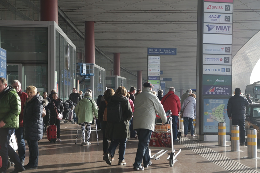 北京首都國際機場3號航站樓出發(fā)口,出行的旅客們已經絡繹不絕