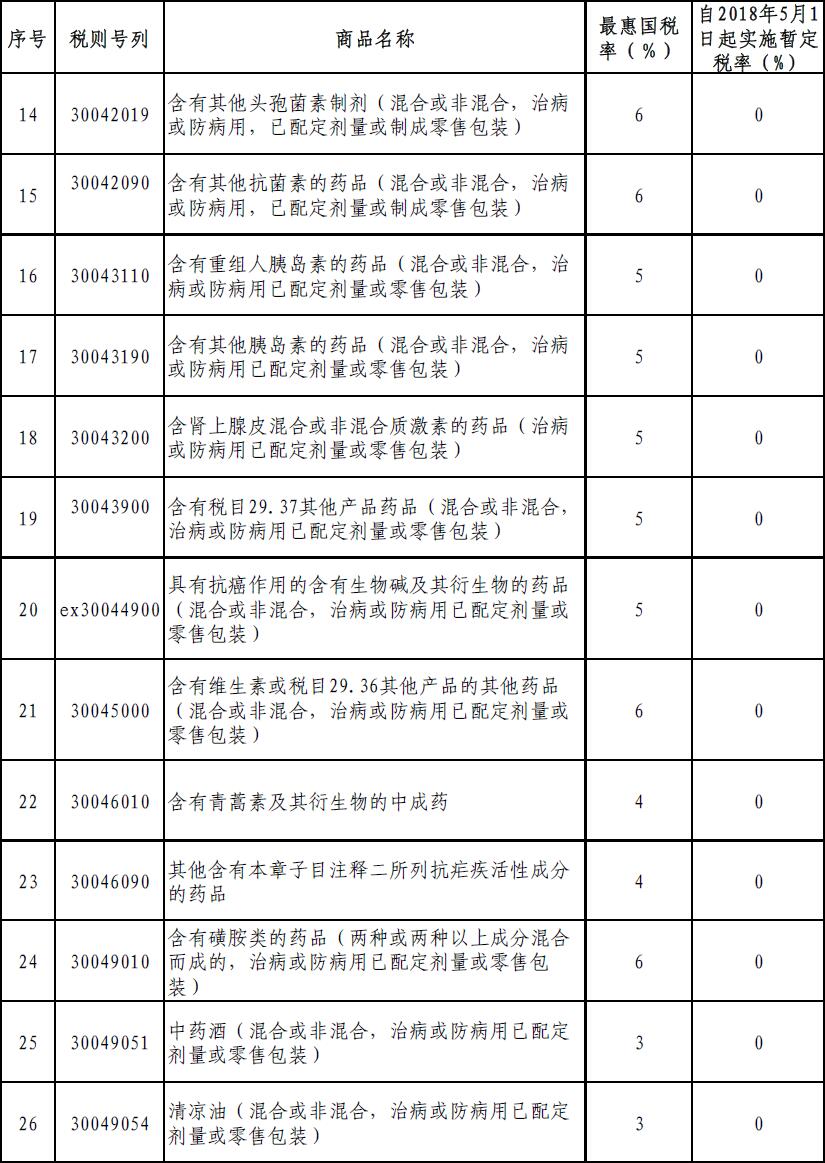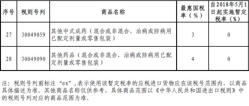 附:進(jìn)口藥品最惠國(guó)暫定稅率調(diào)整表