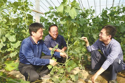 為進(jìn)一步鞏固和加強(qiáng)基層黨組織建設(shè),打贏脫貧攻堅(jiān)戰(zhàn),今年以來,山東臨邑縣選派120名優(yōu)秀年輕干部駐村幫扶,實(shí)行鄉(xiāng)鎮(zhèn)考勤、村里辦公,建立健全縣、鄉(xiāng)、村三級扶貧網(wǎng)格。駐村干部精準(zhǔn)制定扶貧方案,推進(jìn)基層組織轉(zhuǎn)化升級,推動社區(qū)(村)脫貧致富。圖為日前,派駐臨盤街道前楊村駐村干部崔磊(右一)在扶貧產(chǎn)業(yè)園了解果蔬種植情況。