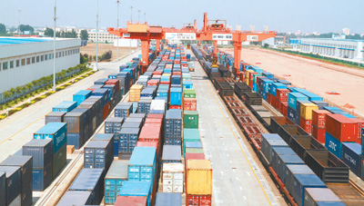 上個月,青島獲批創(chuàng)建中國—上海合作組織地方經(jīng)貿(mào)合作示范區(qū)。站在青島多式聯(lián)運海關(guān)監(jiān)管中心的大看板前,中鐵聯(lián)集青島分公司常務(wù)副總經(jīng)理魏學(xué)倫自豪地說,青島加強與上合組織合作擁有獨特條件,最突出的就是“陸海空鐵”多式聯(lián)運的物流優(yōu)勢。陸——有青島傳化智能公路港;海——世界知名港口青島港距離園區(qū)僅20公里;空——膠東國際機場明年將投入運營;鐵——青島多式聯(lián)運海關(guān)監(jiān)管中心已開通中亞班列、中韓快線、中蒙班列、東盟專線、中歐(青島)國際班列。登上20多米高的軌道龍門吊車平臺,只見腳下一排排顏色各異的集裝箱如同五彩長龍靜臥在鐵道上,蓄勢待發(fā)。