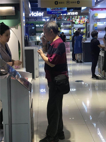一位年過六旬的老人,一會兒工夫向一位空調(diào)導(dǎo)購員鞠躬五次,每次90度。這一幕,發(fā)生在南京新街口蘇寧易購云店的空調(diào)專區(qū)。