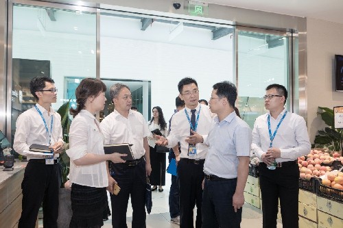 張曙剛帶領(lǐng)建行一行參觀蘇寧小店