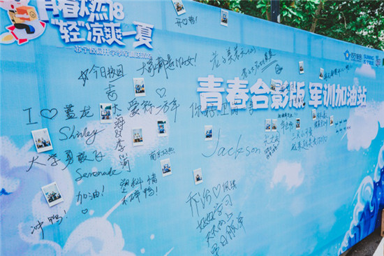 據(jù)介紹,本次蘇寧軍訓(xùn)送清涼活動(dòng)南農(nóng)站現(xiàn)場(chǎng),還特別設(shè)置了“青春合影版 軍訓(xùn)加友站“活動(dòng),為軍訓(xùn)新生們紀(jì)念軍訓(xùn)的英姿。現(xiàn)場(chǎng)所有領(lǐng)取了清涼禮包的同學(xué),可以與身邊好友一起,使用蘇寧校園提供的拍立得合照并將照片貼上展板。