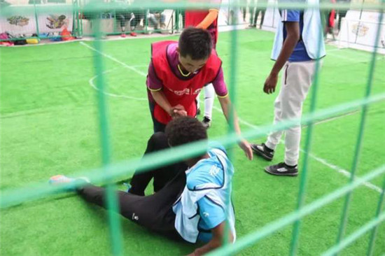 下半場更是熱血沸騰,比賽進(jìn)入了白熱化階段。但外國戰(zhàn)隊(duì)Pilucas成員摔倒后,對(duì)手卻立即上前扶起。
