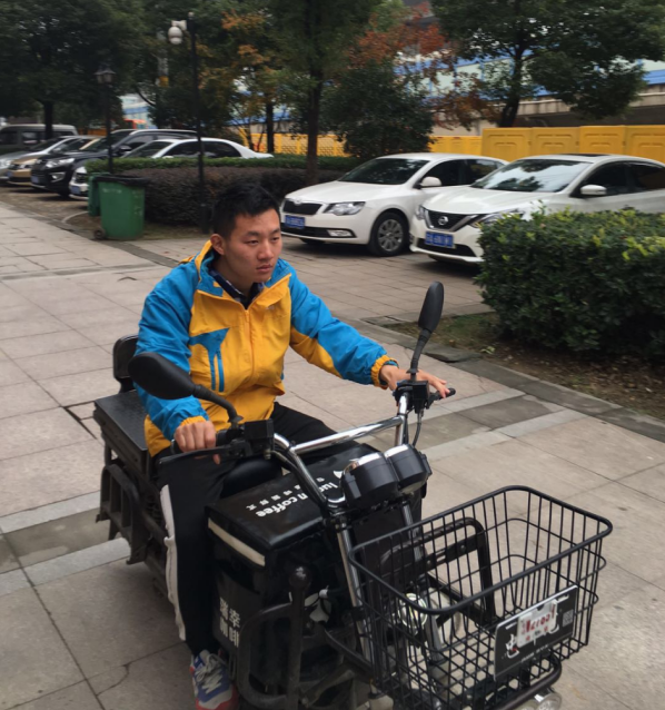 潘俊趕忙將咖啡放到門衛(wèi)室,跑過去攙扶生病的學(xué)生?紤]到送學(xué)生去最近的醫(yī)院也要有一段時(shí)間,潘俊在保安的幫助下,將生病男生抱上快遞車,一路騎車將其送到了醫(yī)院。