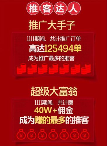 雙十一前夕,蘇寧推客公布了節(jié)日期間五大玩法:家電雙倍傭金、推客賞金賽、拼購(gòu)現(xiàn)金獎(jiǎng)勵(lì)、千萬紅包雨、全民嘉年華超級(jí)現(xiàn)金獎(jiǎng)勵(lì)。通過高額傭金,鼓勵(lì)推客們多多賣貨,自買多省,分享多賺。