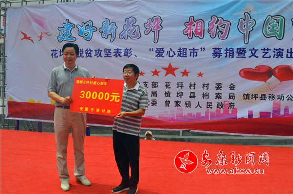 安康新聞網(wǎng)訊(通訊員 陳東青)7月26日上午,鎮(zhèn)坪縣曾家鎮(zhèn)花坪村人聲鼎沸,比三伏天的酷暑更加火熱,比過春節(jié)的氣氛更加熱烈。由市審計(jì)局、鎮(zhèn)坪縣檔案局、縣移動(dòng)公司等市縣幫扶部門協(xié)辦的花坪村脫貧攻堅(jiān)表彰大會(huì)暨愛心超市募捐活動(dòng)正在村委會(huì)前的活動(dòng)廣場(chǎng)舉行。會(huì)上對(duì)花坪村的“致富帶頭人”“勤勞致富模范”等脫貧攻堅(jiān)和“五凈家庭”“孝老愛親模范”“好媳婦”“優(yōu)秀共產(chǎn)黨員”等踐行新民風(fēng)典型進(jìn)行了表彰獎(jiǎng)勵(lì)。活動(dòng)現(xiàn)場(chǎng)還為村上愛心超市募集捐款10.4萬(wàn)元。