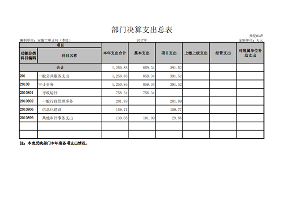 安康市審計局2017年部門決算公開說明