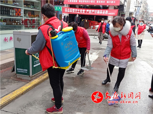 活動現(xiàn)場,志愿服務隊成員穿上紅馬甲,帶上掃把、鏟子、夾子,提上消毒液,背上噴灑器奔走在大街小巷。清掃落葉、揀拾垃圾,為公共設施消毒殺菌,向群眾宣傳防疫常識,指導經(jīng)營戶自覺服從防疫大局,佩戴口罩并做好店鋪的消毒工作,引導群眾采購物資不扎堆、不聚集,做好自身防護。一系列志愿服務行動彰顯了志愿者們的愛心善意和責任擔當,受到群眾的紛紛點贊。