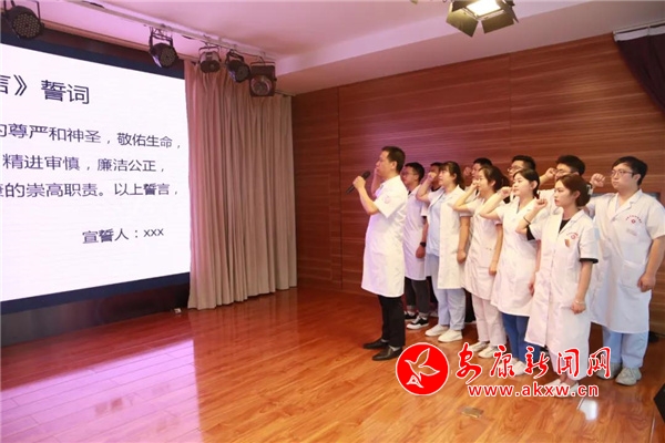 “我莊嚴(yán)宣誓,自覺維護(hù)醫(yī)學(xué)的尊嚴(yán)和神圣,敬佑生命,平等仁愛,患者至上......”鏗鏘有力的宣誓回蕩在六樓會(huì)議室大廳。重溫“醫(yī)師誓言”,捍衛(wèi)醫(yī)者初心,牢記使命擔(dān)當(dāng)。醫(yī)護(hù)人員紛紛表示今后將發(fā)揚(yáng)好婦幼精神,完善自我,奮力前行。