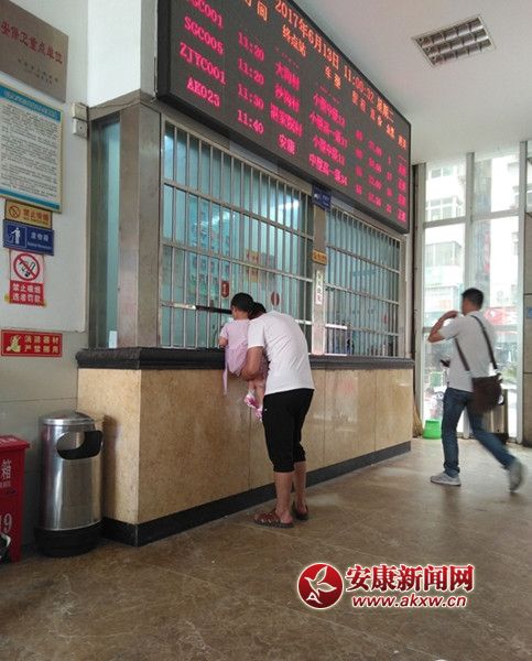 6月13日,旬陽縣汽車站一名家長抱娃咨詢兒童是否符合全票標準。