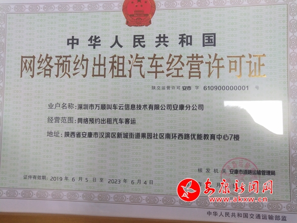 本網訊 (實習記者 羅偉)6月11日,安康市首張網絡預約出租汽車經營許可證發(fā)放,將進一步滿足我市社會公眾多樣化出行需求,規(guī)范網絡預約出租汽車經營服務行為,促進出租汽車行業(yè)和互聯(lián)網融合發(fā)展。ehN安康新聞網