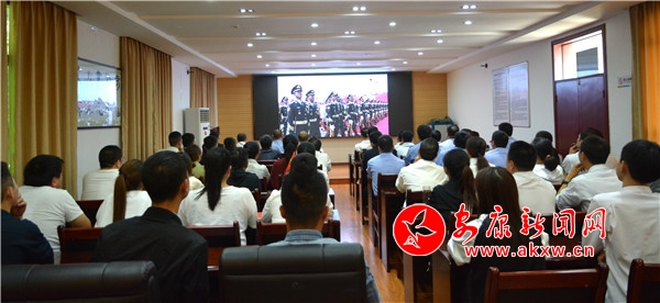 10月1日,安康市公安局組織機(jī)關(guān)民警收看慶祝中華人民共和國成立70周年大會實(shí)況轉(zhuǎn)播。(攝影 周瑞儒)