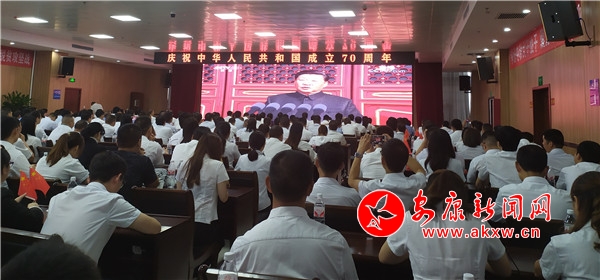 10月1日,恒口示范區(qū)(試驗(yàn)區(qū))管理委員會組織全區(qū)黨員干部和群眾集體收看慶祝中華人民共和國70周年大會實(shí)況轉(zhuǎn)播(攝影 楊靜)