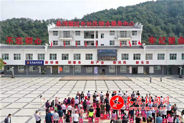 10月1日,漢濱區(qū)縣河鎮(zhèn)鎮(zhèn)政府組織全鎮(zhèn)黨員干部和群眾在新建的紅升社區(qū)廣場集中收看慶祝中華人民共和國70周年大會實(shí)況轉(zhuǎn)播。(攝影 陳軍)