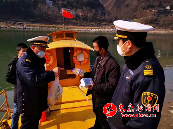 (海事人員為漢濱區(qū)青套渡口渡工發(fā)放個人防護用品)