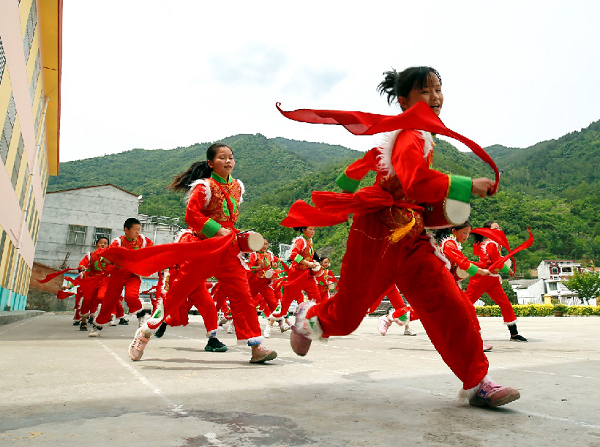 5月26日,陜西省安康市漢濱區(qū)茨溝小學(xué)校園鼓聲如雷,鈸音清脆,鑼鳴鏜鏜。該校高年班同學(xué)為慶祝六一兒童節(jié)開始練習(xí)威風(fēng)鑼鼓。