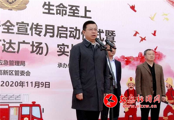 本網(wǎng)訊(記者 魏濤)11月9日是第29個全國消防安全日,為切實(shí)增強(qiáng)全民消防安全意識,提高全社會抵御火災(zāi)的能力,掀起消防宣傳熱潮,當(dāng)日上午,安康市全民消防宣傳月啟動儀式暨大型商業(yè)綜合體實(shí)戰(zhàn)演練在高新區(qū)萬達(dá)廣場舉行。市委常委、常務(wù)副市長高晶華出席并宣布儀式啟動。