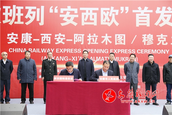 據(jù)了解,“安西歐”專列將從安康始發(fā),抵達(dá)西安港集結(jié)中轉(zhuǎn),再次搭乘中歐專列長(zhǎng)安號(hào),向西發(fā)往哈薩克斯坦阿拉木圖、烏茲別克斯坦塔什干、德國(guó)穆克蘭等中歐主要站點(diǎn)城市。專列首發(fā)儀式上,市政府與西安國(guó)際港務(wù)區(qū)管委會(huì)簽訂了《開行中歐班列(安西歐)合作協(xié)議》。