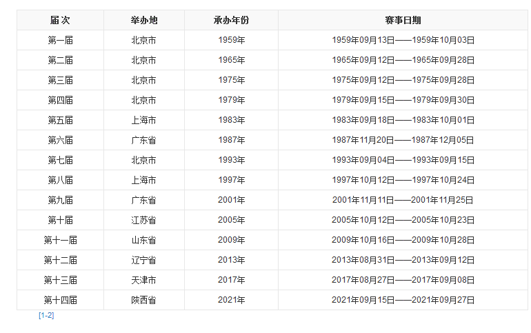 中華人民共和國全國運動會,簡稱“全運會”。全國運動會是中國國內(nèi)水平最高,規(guī)模最大的綜合性運動會。全運會的比賽項目每屆都會有微調(diào),除武術(shù)外,基本與奧運會相同。其原意是為國家的奧運戰(zhàn)略鍛煉新人、選拔人才。全運會每四年舉辦一次,一般在奧運會年前后舉行。首屆全運會1959年 在北京舉辦。前九屆全運會由北京、上海、廣東三地輪流舉辦。2001年初,國務(wù)院辦公廳正式發(fā)布了《關(guān)于取消全國運動會由北京、上海、廣東輪流舉辦限制的函》。